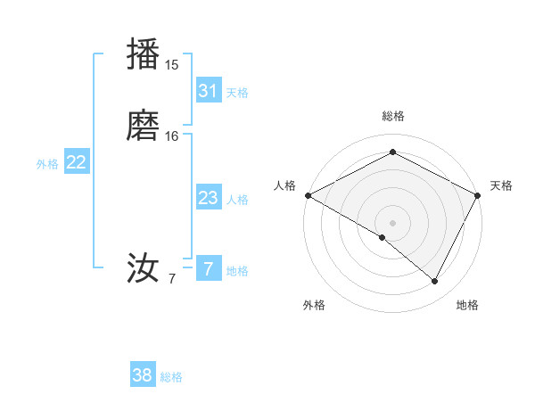 播磨 汝さんの総格は38画の4点!