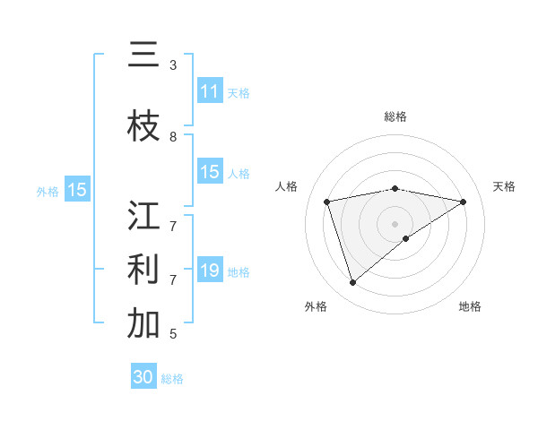 三枝 江利加さんを姓名の画数から五運を鑑定