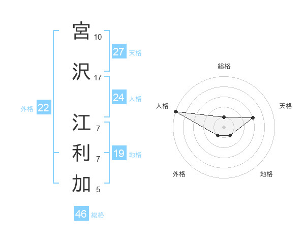 宮沢 江利加さんを姓名の画数から五運を鑑定