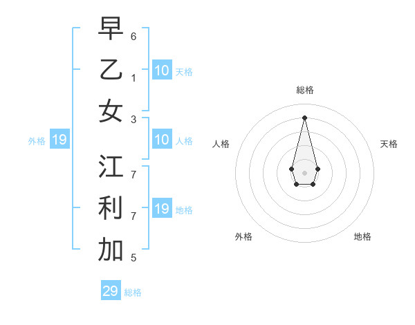早乙女 江利加さんを姓名の画数から五運を鑑定