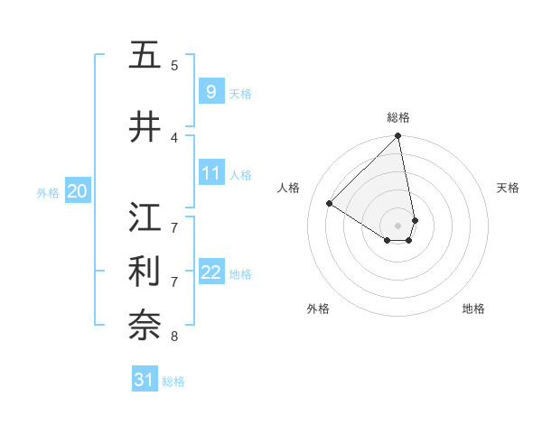 五井 江利奈さんの総格は31画の5点!