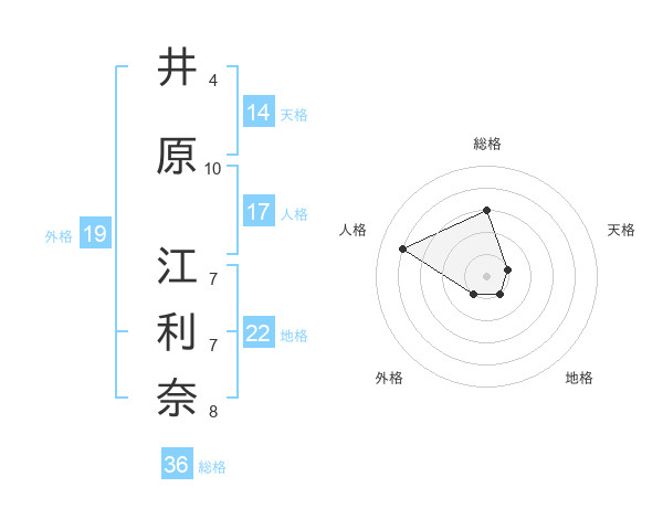 井原 江利奈さんを姓名の画数から五運を鑑定
