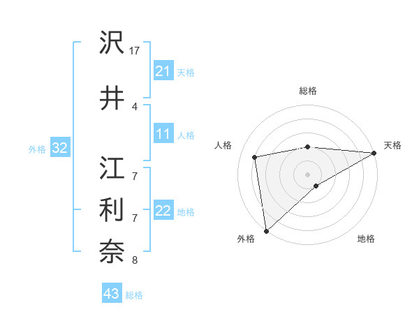 沢井 江利奈さんを姓名の画数から五運を鑑定