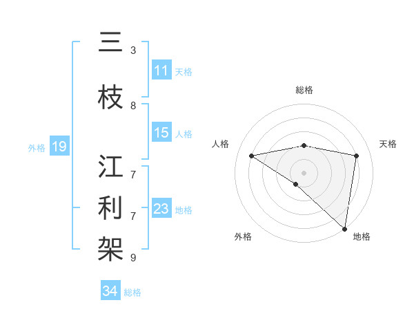 三枝 江利架さんを姓名の画数から五運を鑑定