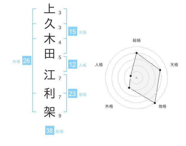上久木田 江利架さんを姓名の画数から五運を鑑定