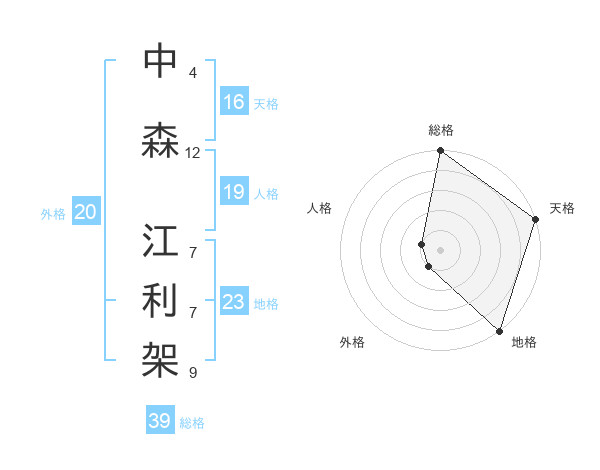 中森 江利架さんの総格は39画の5点!