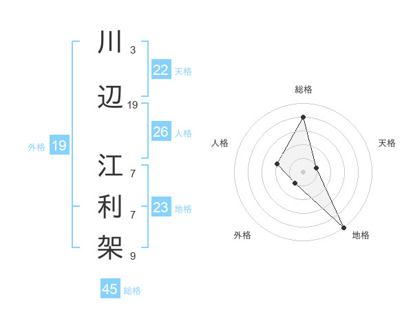川辺 江利架さんを姓名の画数から五運を鑑定