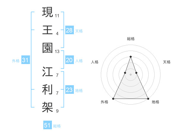 現王園 江利架さんを姓名の画数から五運を鑑定