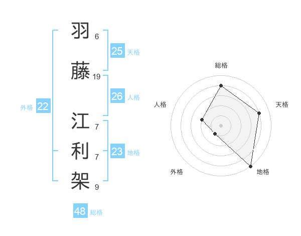羽藤 江利架さんの天格は25画の4点!