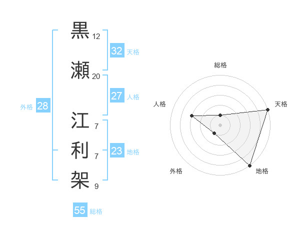 黒瀬 江利架さんの天格は32画の5点!