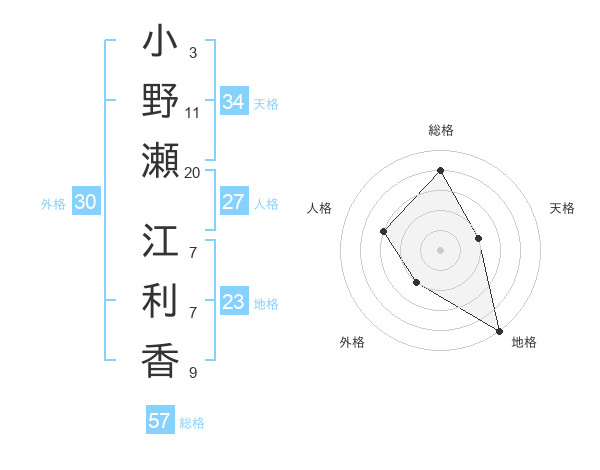 小野瀬 江利香さんを姓名の画数から五運を鑑定