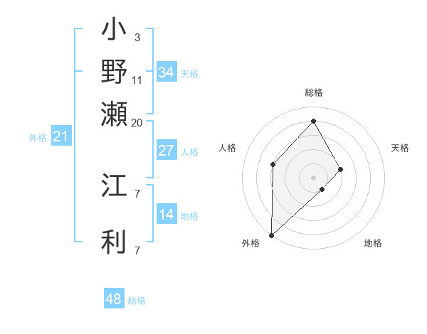 小野瀬 江利さんの総格は48画の4点!