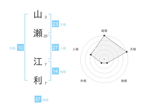 山瀬 江利さんの総格は37画の5点!
