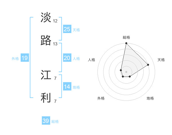 淡路 江利さんの総格は39画の5点!