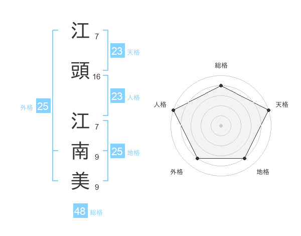 江頭 江南美さんを姓名の画数から五運を鑑定