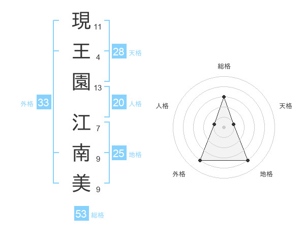 現王園 江南美さんを姓名の画数から五運を鑑定