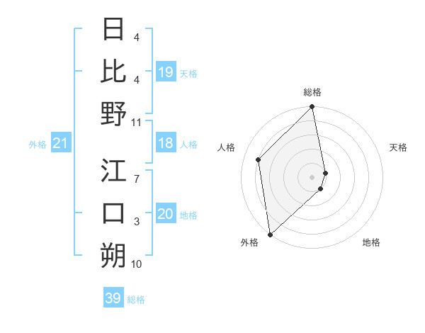 日比野 江口朔さんの外格は21画の5点!