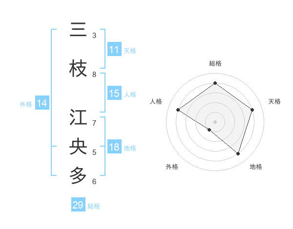 三枝 江央多さんの天格は11画の4点!