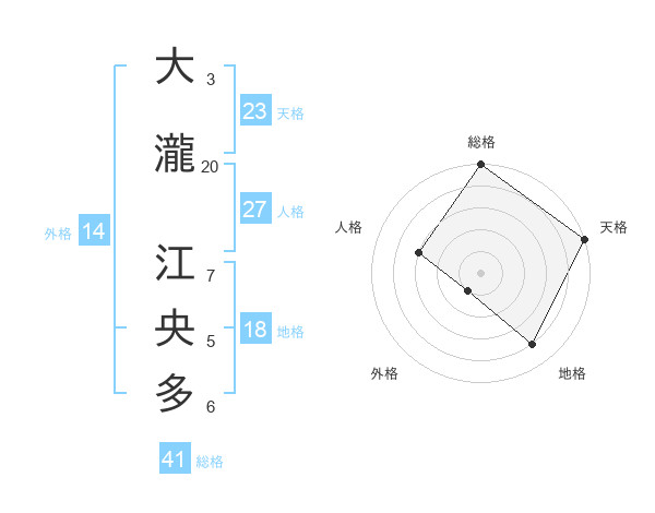 大瀧 江央多さんを姓名の画数から五運を鑑定