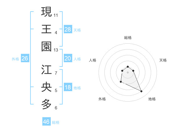 現王園 江央多さんの総格は46画の1点!