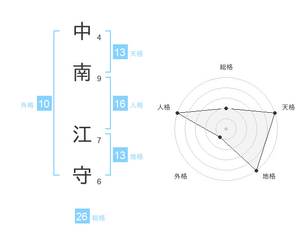 中南 江守さんの天格は13画の5点!