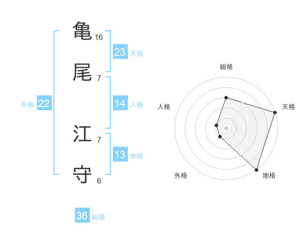 亀尾 江守さんを姓名の画数から五運を鑑定