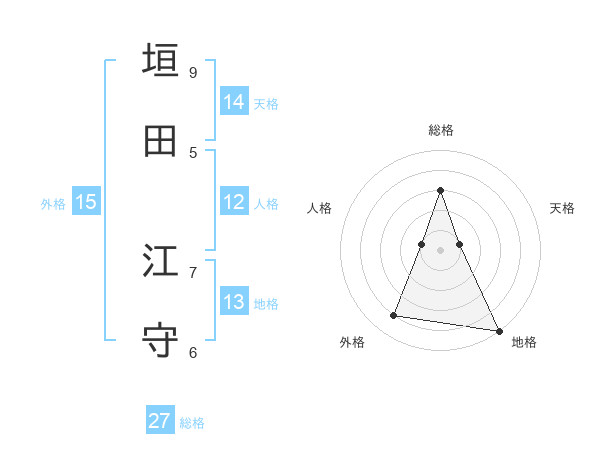 垣田 江守さんの総格は27画の3点!