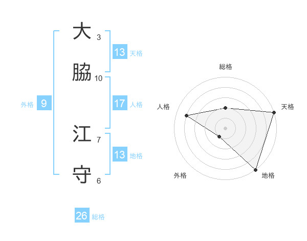 大脇 江守さんの総格は26画の2点!