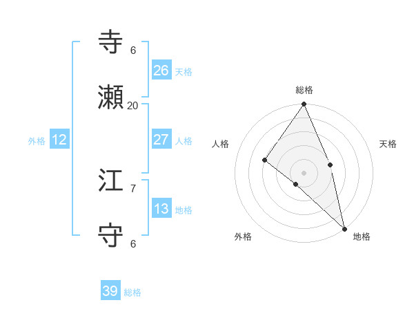 寺瀬 江守さんの総格は39画の5点!