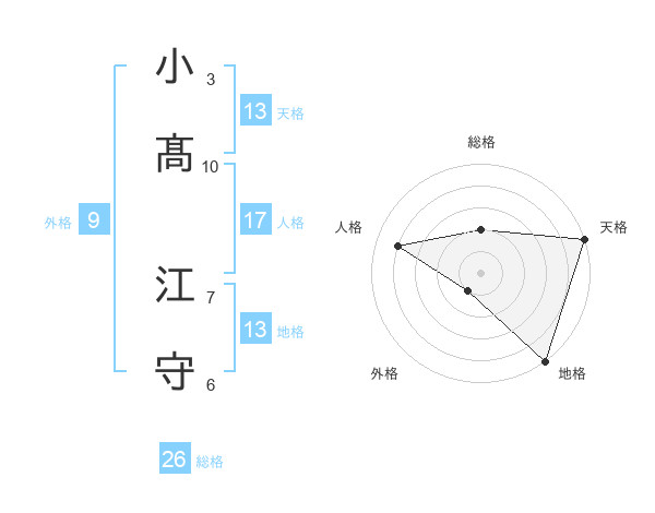小髙 江守さんの天格は13画の5点!