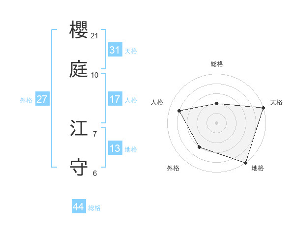櫻庭 江守さんを姓名の画数から五運を鑑定