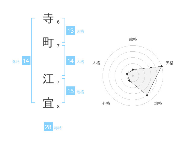 寺町 江宜さんを姓名の画数から五運を鑑定