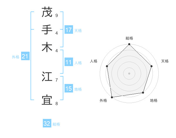 茂手木 江宜さんを姓名の画数から五運を鑑定