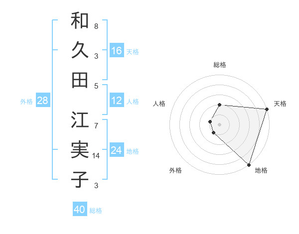和久田 江実子さんの天格は16画の5点