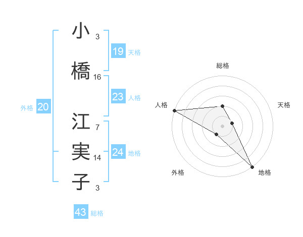 小橋 江実子さんを姓名の画数から五運を鑑定