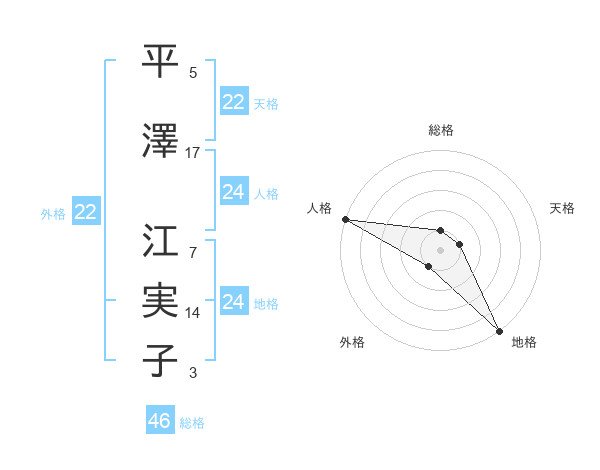 平澤 江実子さんを姓名の画数から五運を鑑定
