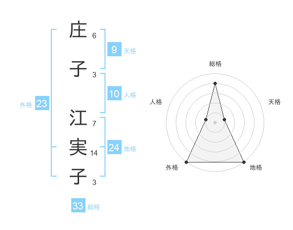 庄子 江実子さんを姓名の画数から五運を鑑定
