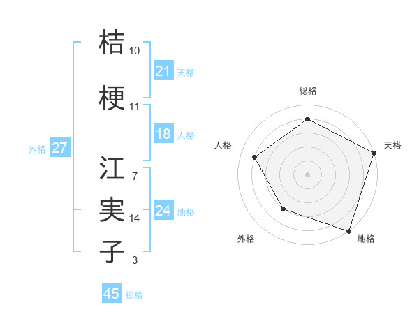 桔梗 江実子さんを姓名の画数から五運を鑑定