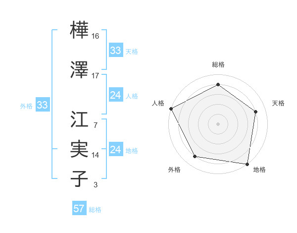 樺澤 江実子さんを姓名の画数から五運を鑑定