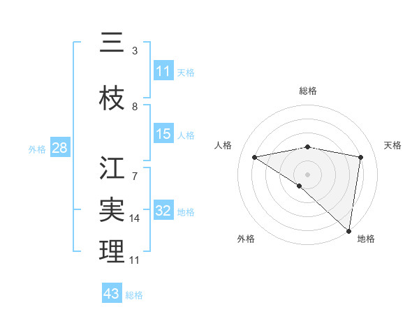 三枝 江実理さんを姓名の画数から五運を鑑定