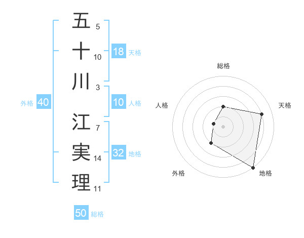 五十川 江実理さんを姓名の画数から五運を鑑定