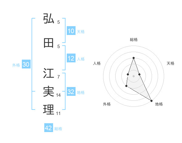 弘田 江実理さんの総格は42画の3点!