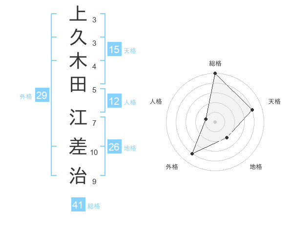 上久木田 江差治さんを姓名の画数から五運を鑑定