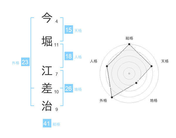今堀 江差治さんを姓名の画数から五運を鑑定