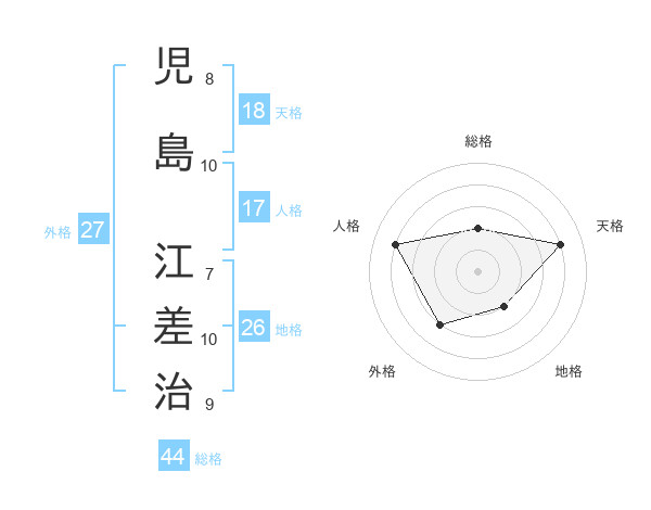 児島 江差治さんの総格は44画の2点!