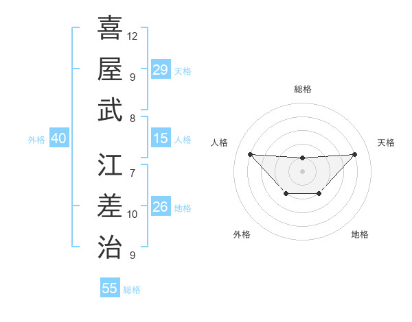喜屋武 江差治さんを姓名の画数から五運を鑑定