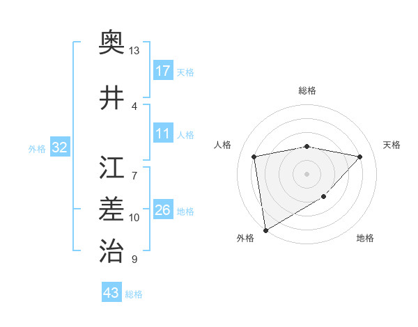 奥井 江差治さんを姓名の画数から五運を鑑定