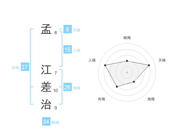 孟 江差治さんの総格は34画の2点!