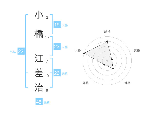 小橋 江差治さんを姓名の画数から五運を鑑定