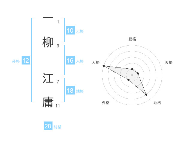 一柳 江庸さんを姓名の画数から五運を鑑定